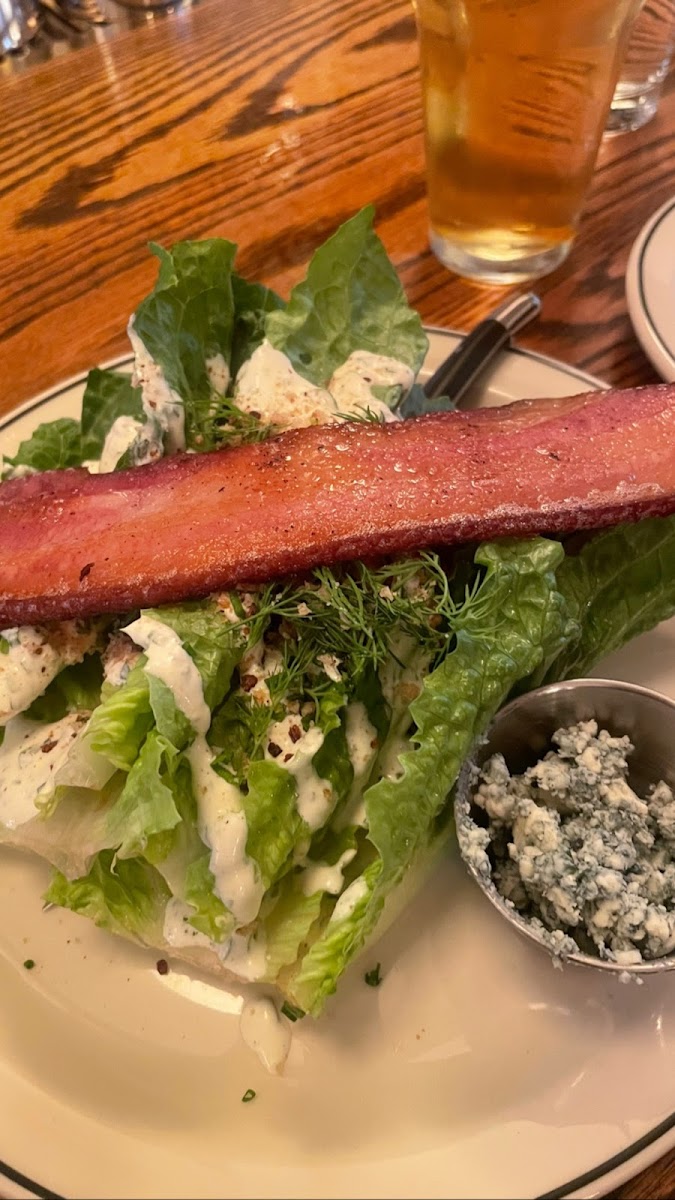 Other dishes like the wedge salad with bacon, French onion soup, and shrimp cocktail offer variety, serving those who want lighter or more traditional starters before settling into heartier mains. While seafood options like oysters and prawn cocktails make appearances, the food generally emphasizes rustic, approachable comfort over high-concept cuisine.