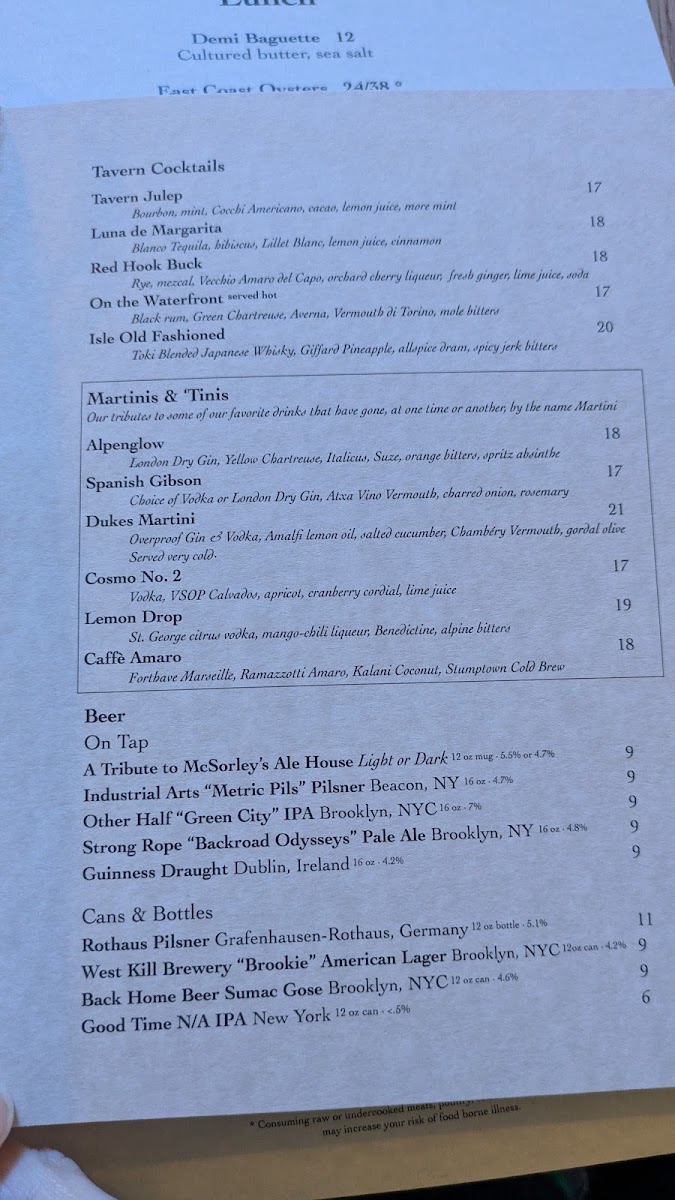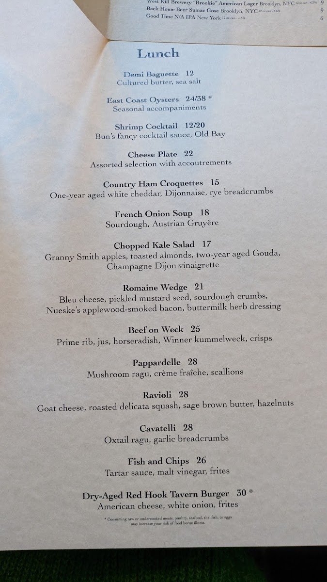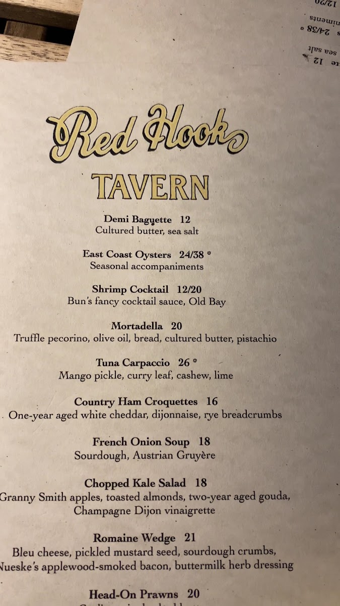 Red Hook Tavern Menu